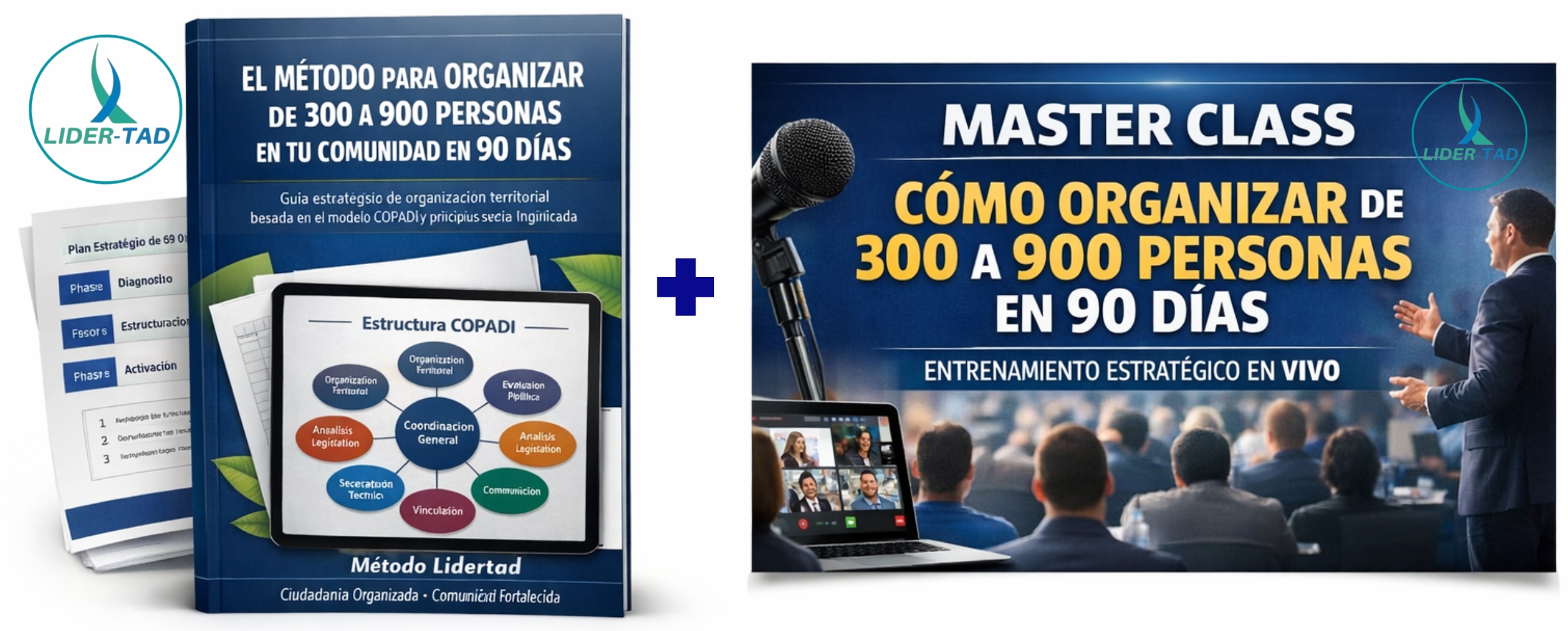 Obtén el Manual Estratégico de Organización Comunitaria y acceso exclusivo al Master Class: Cómo Organizar de 300 a 900 Personas en 90 Días.